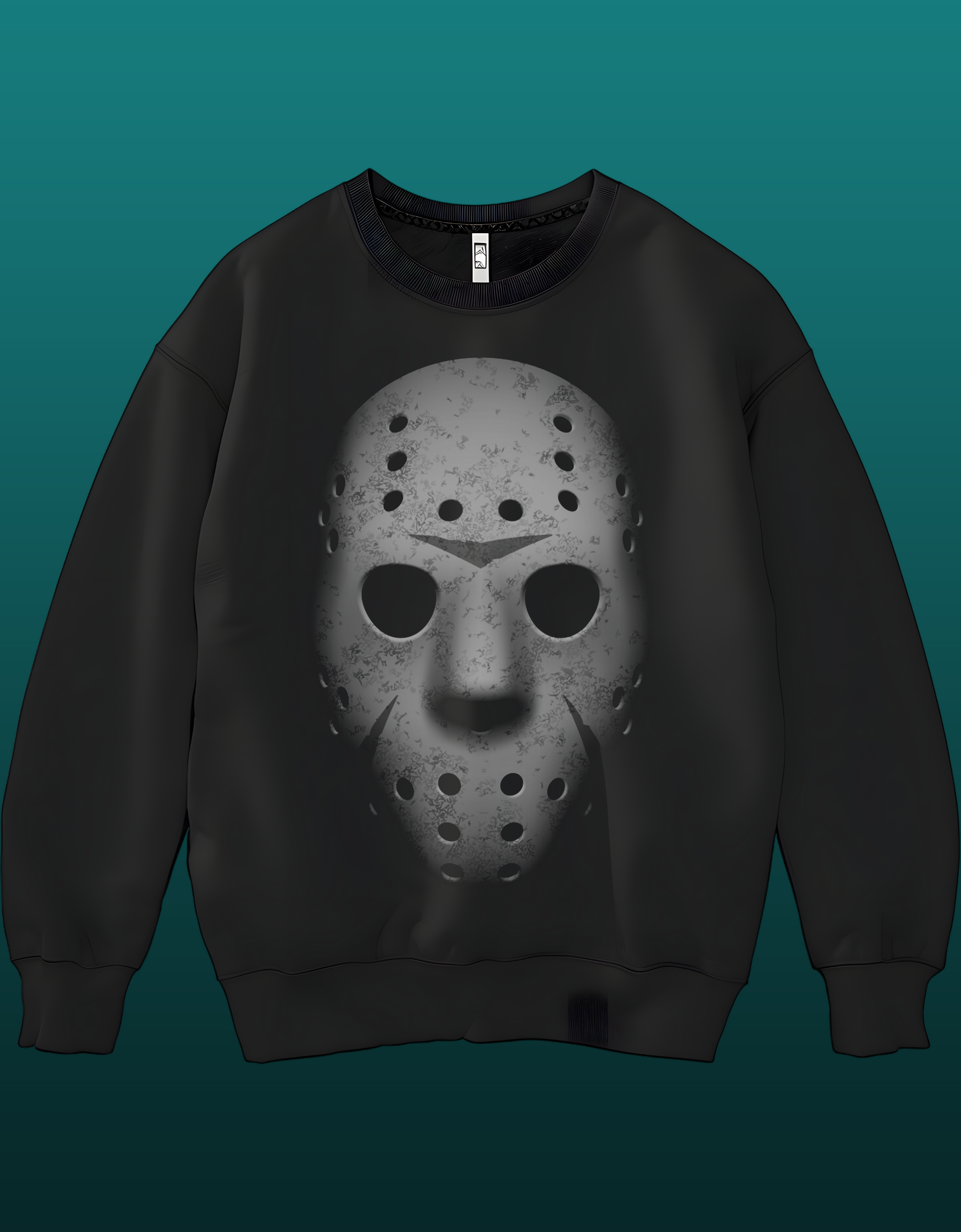 Camp Crystal Lake never looked this good. This all-black sweatshirt showcases a striking graphic of the masked slasher legend from Friday the 13th. Built from a soft cotton-blend, it delivers comfort and durability while serving pure horror nostalgia with a streetwear edge.