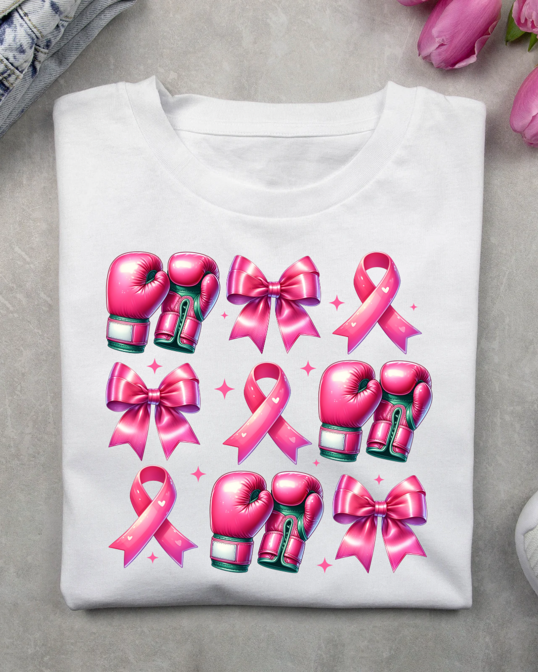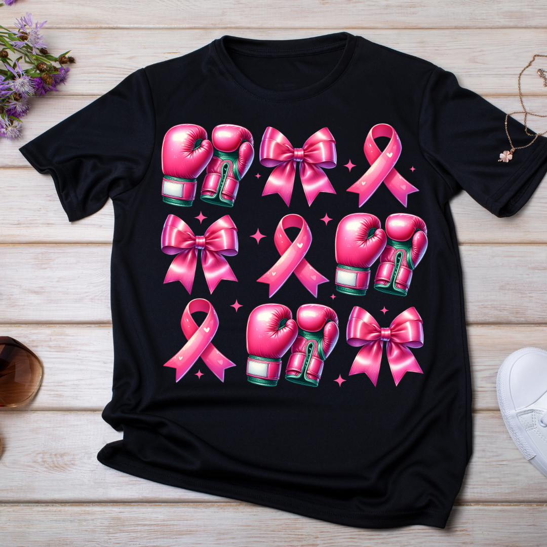 Empower your fight against breast cancer with our vibrant t-shirt featuring pink ribbons, boxing gloves, and playful pink bows. This inspiring design symbolizes strength, resilience, and support in the journey against breast cancer. Crafted from soft, comfortable fabric, it’s perfect for raising awareness at events, workouts, or casual outings. Wear it with pride and help spread the message of hope and unity!