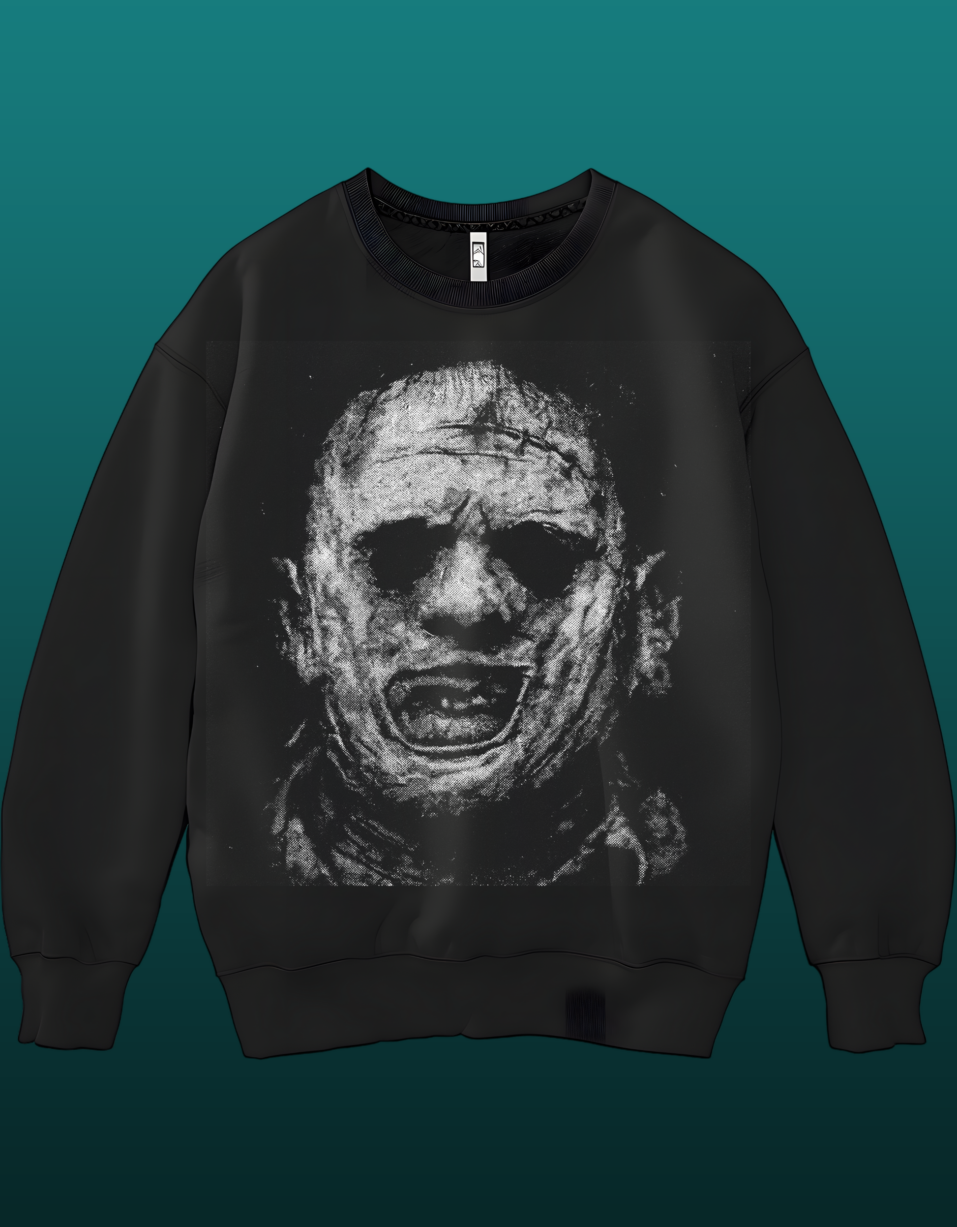 Step into the madness with this all-black sweatshirt from The Texas Chainsaw Massacre. With its bold graphic and streetwear edge, this piece fuses horror nostalgia with everyday wear. Made from a soft cotton-blend, it’s built for comfort but designed to kill—style-wise, of course.
